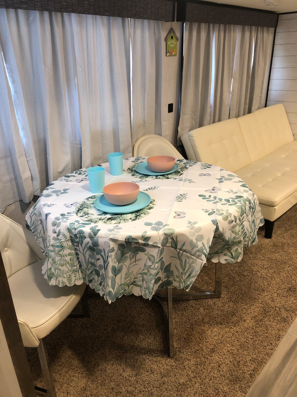 L'aventure vous attend dans cette destination à la campagne. Venez profiter de cette charmante, moderne, propre, petite maison. Vous disposerez d'une place de stationnement à proximité dans une communauté fermée et sécurisée. Il y a une petite cuisine pittoresque avec une cuisinière à 4 feux, un grand réfrigérateur, un four à micro-ondes, une machine à café Keurig et bien sûr du café, du thé et des crémiers. À l'extérieur de la chambre se trouve une salle de bain avec une grande douche lumineuse. Beaucoup de serviettes. Un endroit pour suspendre des vêtements, et dans la chambre, il y a une commode si vous profitez d'un séjour plus long avec nous.