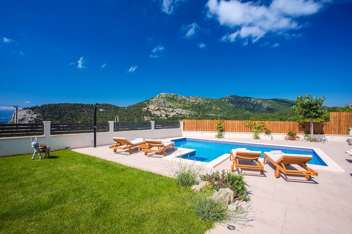 Notre toute nouvelle villa de luxe Luka est située dans un endroit merveilleux avec de belles vues et pourtant très proche de tous les points d'intérêt locaux. La villa est nouvellement construite pour un maximum de confort et de luxe avec 3 chambres attenantes (et une chambre supplémentaire en cas de besoin) et toutes les autres commodités dont vous pourriez avoir besoin. Une grande piscine privée chauffée avec une vue magnifique, un grand jacuzzi intérieur dans l'espace spa avec un sauna et une salle de jeux/billard, un bel espace extérieur clôturé avec un ensemble de tennis de table, badminton ou tir à l'arc.