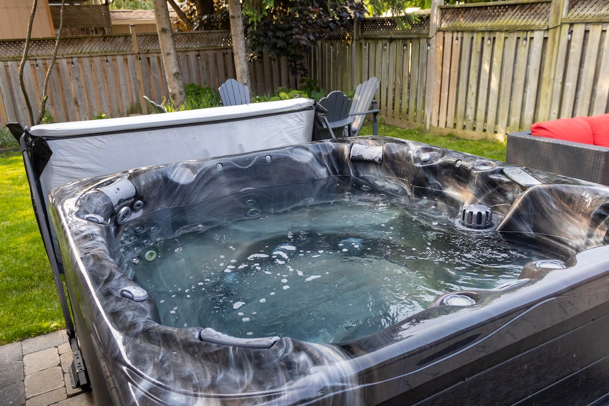 ✹ Contactez-nous pour bénéficier de réductions sur les séjours longue durée✹ Entrez dans cette élégante maison de 2100 pieds carrés à St. Catharines et profitez du mélange parfait de décoration moderne et de design minimaliste. Doté de 5 chambres spacieuses, d'une suite parentale, d'une cuisine principale, d'une cour avec jacuzzi et sauna extérieur, cet espace est idéal pour les familles ou les grands groupes d'amis. Découvrez les inoubliables chutes du Niagara ou visitez les vignobles locaux. Carrousel de Lakeside Park : 6 min Centre-ville : 6 min Chutes du Niagara - 15 min