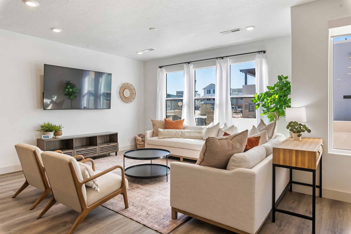 Nouvelle maison de ville de luxe 5 BD/4,5 BA avec étages séparés pour les adultes et les enfants. Magnifiquement décoré et peut accueillir confortablement 16 personnes avec 9 lits et 2 salons/salles communes à proximité des restaurants, des parcs de la ville, de certaines des meilleures randonnées pédestres, VTT, terrains de golf et réservoirs, à environ 1 heure du parc national de Zion. Les équipements sur place comprennent une piscine chauffée, un jacuzzi, des terrains de cornichon et de basket-ball, une connexion Wi-Fi sécurisée gratuite, un banc de sable pour enfants et un mur d'escalade miniature !