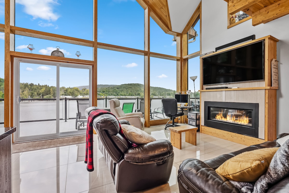 Superbe chalet caractérisé par son ambiance chaleureuse et des équipements luxueux. La chambre, située sur une mezzanine, offre une vue imprenable sur la rivière St-Maurice. Elle est équipée d'une baignoire pour un moment de détente ultime. Le chalet propose différents types d'embarcations pour explorer la rivière. Bien que le site soit généralement paisible, il est possible d'entendre le passage de certains véhicules dans certaines circonstances. Véhicule VUS ou 4x4 est recommandé en hiver