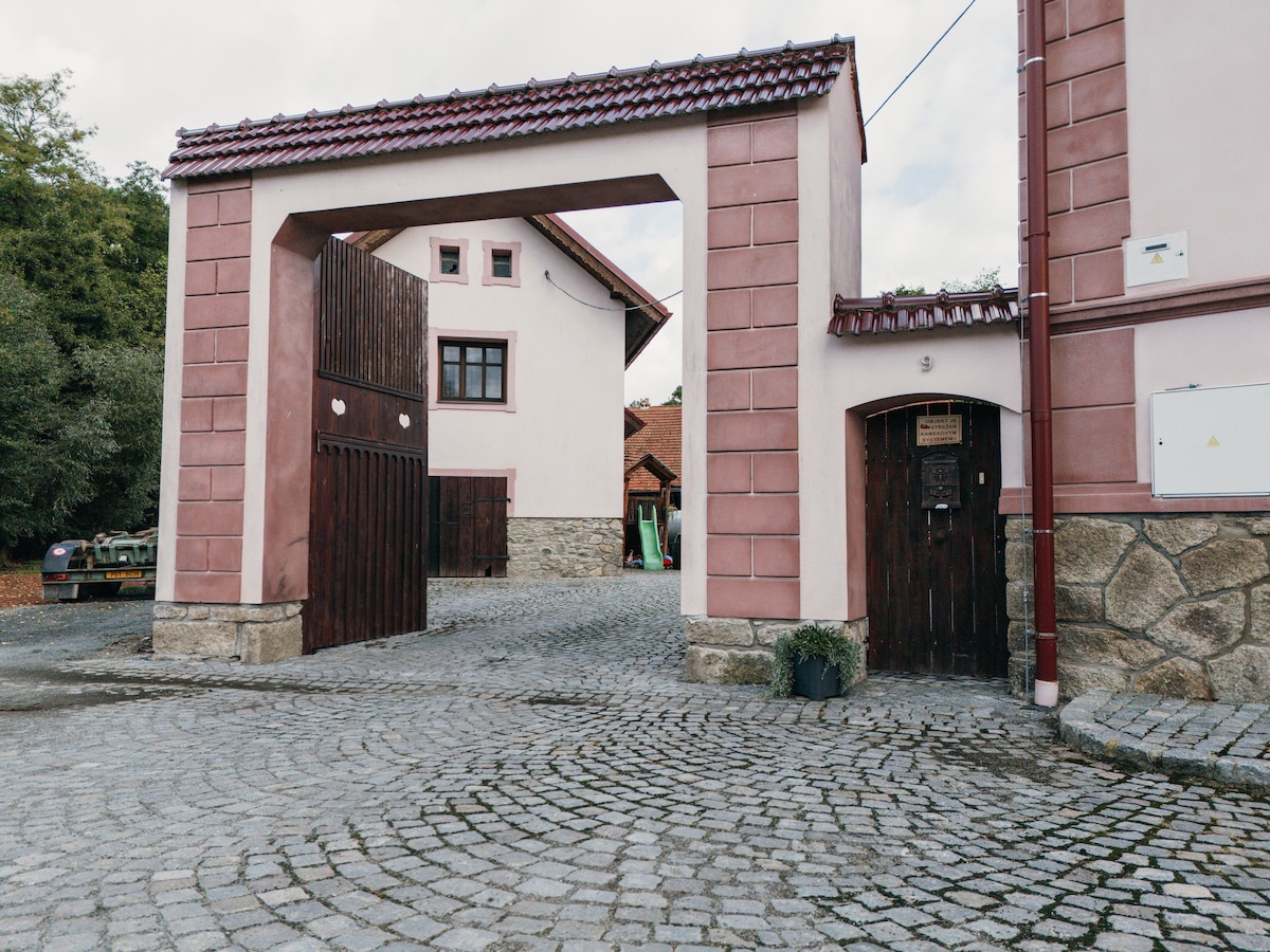 Le chalet d'une capacité de 14 personnes maximum dans le paisible village de Zhorec à proximité de Bezdruzice. Le logement dispose d'une cuisine équipée avec une cuisinière, deux salles de bain, deux chambres doubles avec la possibilité d'un lit supplémentaire, une chambre familiale pour quatre personnes et un loft pour quatre autres personnes. Le bâtiment comprend un jardin spacieux et nos animaux de ferme. À distance de route de Marienbad et de nombreux autres endroits intéressants.