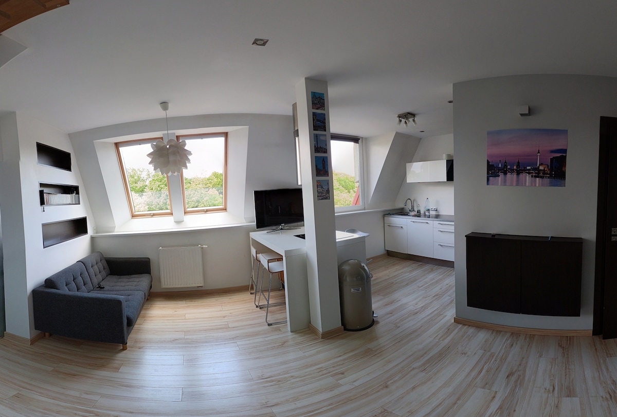 Appartement avec balcon situé au deuxième étage en plein centre-ville à seulement 5 minutes à pied de la gare ferroviaire et routière. Il se compose d'un salon avec une kitchenette, une chambre séparée, un dressing et une salle de bain. Il est équipé de tous les appareils électroménagers et électroniques nécessaires, ainsi que d'Internet. Possibilité de se garer devant la maison. Accès facile à tous les endroits intéressants tels que le cinéma, le musée, la piscine, ainsi que les Planty Stargardzkie entourant la vieille ville. Il y a aussi de nombreuses pistes cyclables