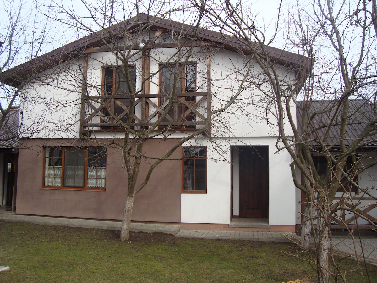 Une maison de vacances confortable dans un quartier calme de Lviv. La maison est proche des autoroutes importantes Kiev-Chop, Shehyny, Krakivets, il y a une place de parking gratuite. La maison a tout ce dont vous avez besoin pour des vacances confortables pour 8 personnes, literie propre, serviettes de toilette, vaisselle. Trois chambres et une chambre d'amis, deux salles de bains séparées et une cuisine entièrement équipée avec tous les éléments essentiels avec une grande table à manger. Il y a une aire de jeux près de la maison, un jardin calme.