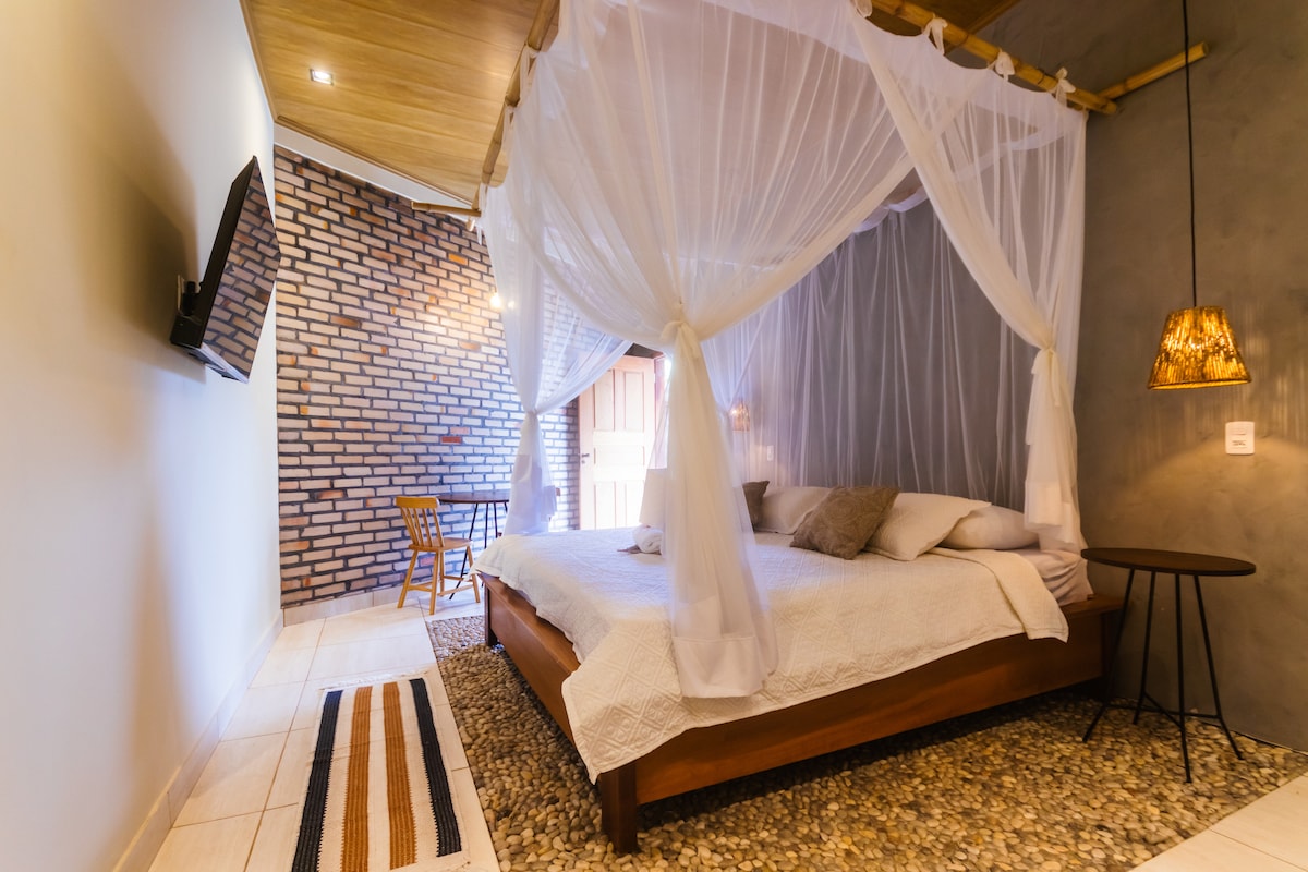 Charming and spacious suite with queen bed + single bed, air conditioning, hammock, and work desk. Located in the award-winning village of Bar da Hora (Braztoa 2024, featured in Folha de S. Paulo), just 15 minutes by canoe from Atins (transfer not included). Nature, silence, and comfort. Breakfast included | Tours with certified local guides | Virtual concierge.