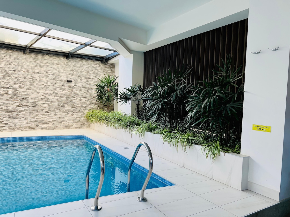 Profitez d'une expérience élégante dans cet hébergement central, dans un bâtiment neuf et élégant, dans le meilleur secteur de Quito, à proximité des restaurants, centres commerciaux, cafés, magasins, etc. secteur calme et sûr, gardiennage 24h/24, bâtiment 24h/24, hébergement conçu avec un style élégant et avec beaucoup de chaleur pour que vous vous sentiez comme chez vous.