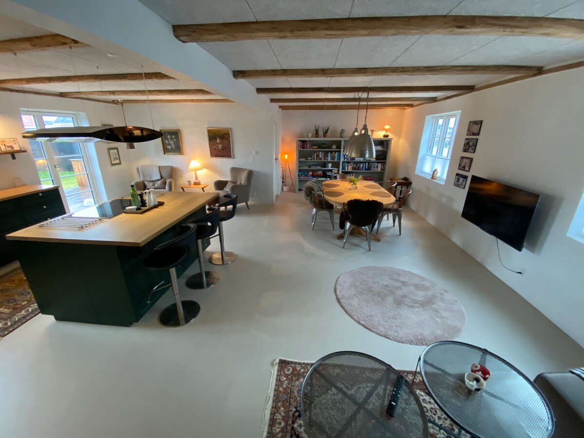 L'une des plus anciennes maisons de pêcheurs de Limfjord datant de 1774 avec une histoire fantastique est décorée avec de superbes designs et se trouve à seulement 50 mètres de la plage sur un grand terrain privé orienté sud avec une cuisine extérieure et un salon avec vue directe sur le fjord. La région est remplie de sentiers de randonnée, il y a deux vélos prêts à découvrir Thyholm ou les deux kayaks peuvent vous emmener autour de l'île et vous pouvez également ramasser vos propres huîtres et moules dans l'eau et les préparer pendant que le soleil se couche sur l'eau