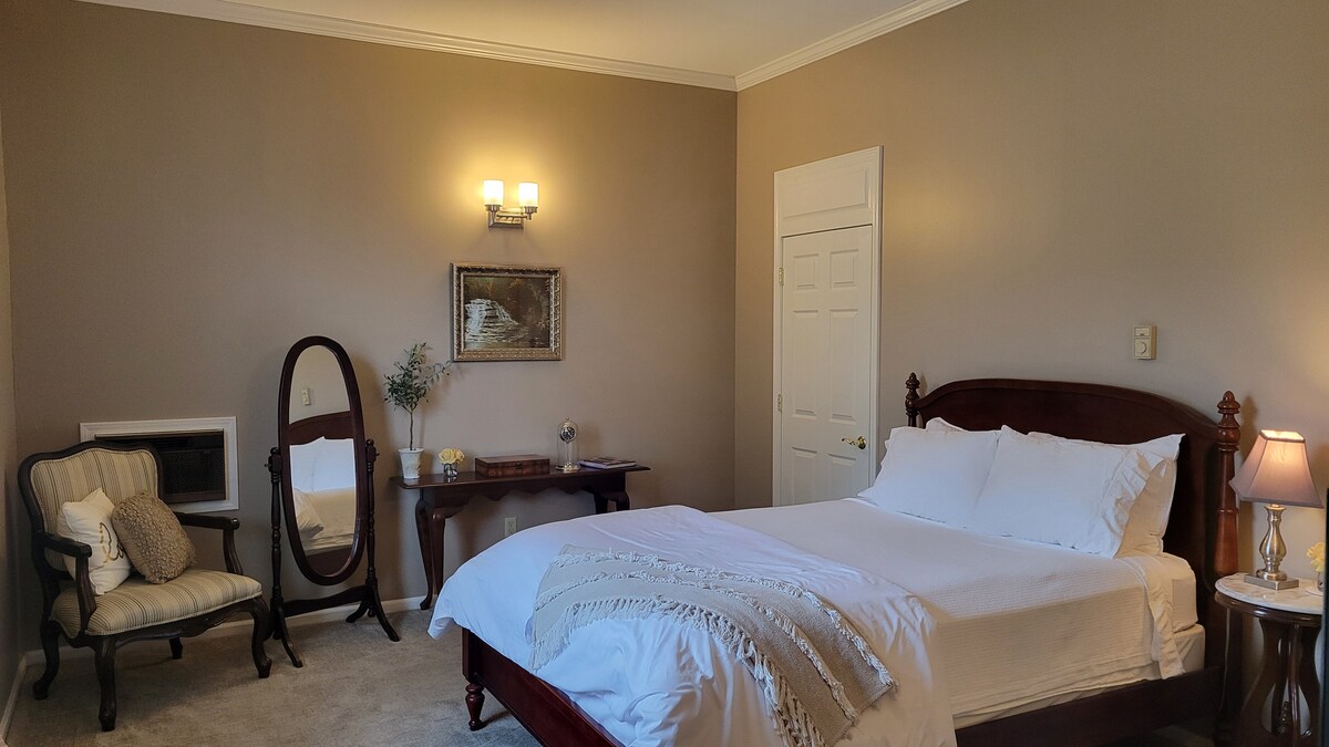 Évadez-vous dans la romantique George Room du Parker House, une demeure victorienne des années 1880 magnifiquement restaurée. Détendez-vous dans un lit king-size luxueux, relaxez-vous dans un salon privé avec une chaise longue, un fauteuil et un pouf, ou sortez sur votre balcon privé pour une bouffée d'air frais. Profitez du confort et de l'intimité de votre propre salle de bain élégante, avec douche à l'italienne. La Parker House dispose de quatre chambres uniques. Cliquez sur ma photo de profil pour afficher toutes les options disponibles pour vos dates de voyage.