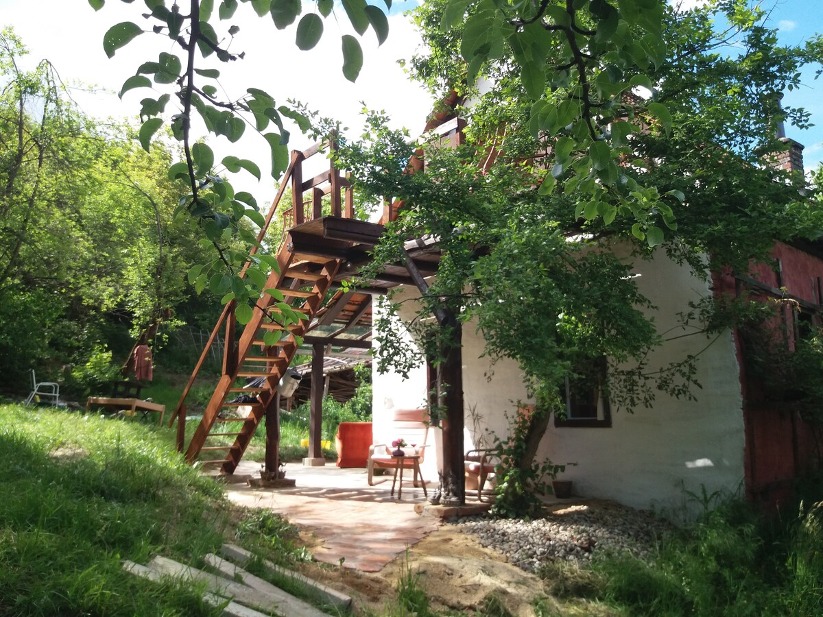 Villa dans le jardin. Appartement complet avec une chambre à coucher, un salon-chambre à coucher, une salle à manger, une nouvelle cuisine entièrement équipée, une salle de bain avec baignoire et WC séparé, au sous-sol avec vue sur le jardin et des sièges dans le jardin. Les chambres sont accessibles séparément par une porte communicante. Possibilité de stationnement pour 1 véhicule sur la propriété. Bonne desserte par les transports en commun.