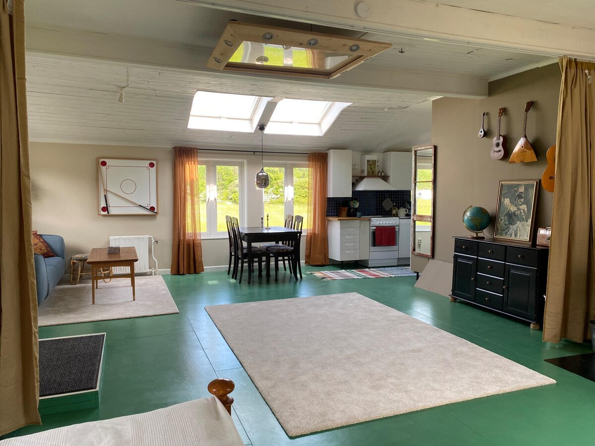 Cottage avec vue sur la mer dans un endroit isolé. Cuisine et salon ouvert, 2 chambres, 1 salle de bain, 1 toilette. La chambre 3 est située dans une maison d'hôtes séparée. Cuisine entièrement équipée avec lave-vaisselle, four à micro-ondes, cuisinière à induction et four. À 200 m de la mer avec des falaises et une plage de sable fin. Plusieurs patios meublés, pelouse et barbecue. À distance de marche de l'épicerie, de l'arrêt de bus et du ferry pour Åstol et Dyrön Tjörn offre tout, de la belle nature, de la natation, de la pêche, du paddle, de la randonnée à l'art et aux restaurants.