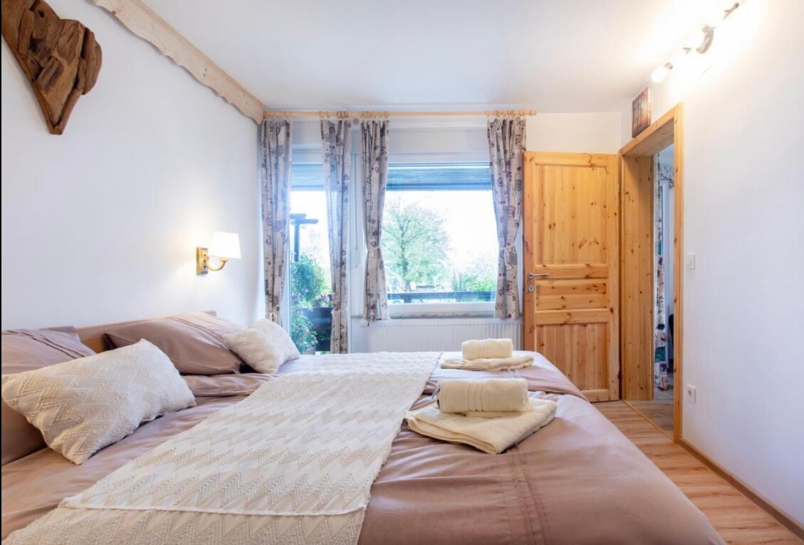 Retraite alpine spacieuse près du lac de Bled ⛰️🏡 Profitez d'une vue imprenable sur les Alpes juliennes, le pic du Triglav et le château de Bled depuis ce grand appartement de 2 chambres et 2 salles de bain. Doté d'une cuisine entièrement équipée, d'un salon spacieux et de balcons pittoresques, il est parfait pour les amoureux de la nature. Situé dans un village calme avec accès direct aux sentiers de randonnée, à seulement 10 minutes de Bled et à 30 minutes de Bohinj ou Ljubljana. Idéal pour la randonnée, le vélo et le ski toute l'année ! 🚶♂️🚴♀️🎿