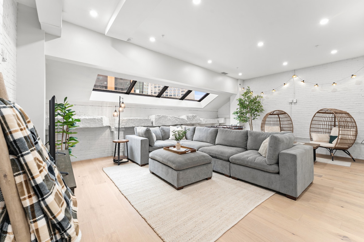 Présenté dans le Boston Design Guide. Luxueux appartement en plein étage dans le quartier historique et charmant de Gaslight District dans le quartier de Charlestown à Boston. À quelques pas du monument de Bunker Hill et à 1,5 miles de l'Encore Casino. Cuisine neuve avec finitions en cuivre haut de gamme, nouveaux appareils électroménagers. Télévision connectée HD avec applications de films et de streaming. Matelas en mousse à mémoire de forme Queen Size, penderie, canapé-lit confortable, salle de bain complète avec douche carrelée neuve, lave-linge/sèche-linge et équipements de type hôtel (shampoing, savon, etc.).
