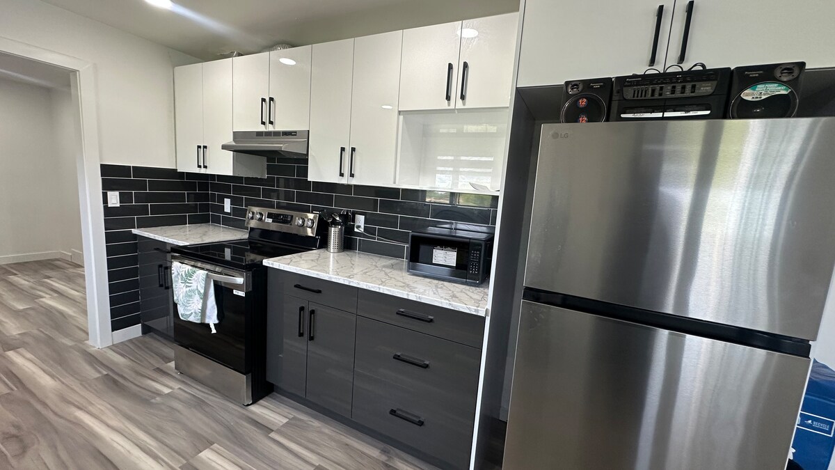 Nouvelle suite en sous-sol entièrement meublée. Cette suite offre 📌 2 chambres (1 lit King Size et 1 lit Queen Size) 📌 1 salle de bain complète ; un espace de vie📌 spacieux ; 📌 Grande cuisine Salle à📌 manger 📌 Télévision LED 4K UHD 65 pouces avec Netflix Entrée 📌 indépendante Chemin 📌 éclairé Stationnement 📌 gratuit 24h/24 -Wi-Fi 📌 gratuit Bienvenue dans notre nouvelle suite nichée dans un quartier très paisible de Blumberg Trail, à quelques pas de la Transcanadienne 1. Que vous soyez là pour une escapade relaxante, notre emplacement garantit intimité et commodité.