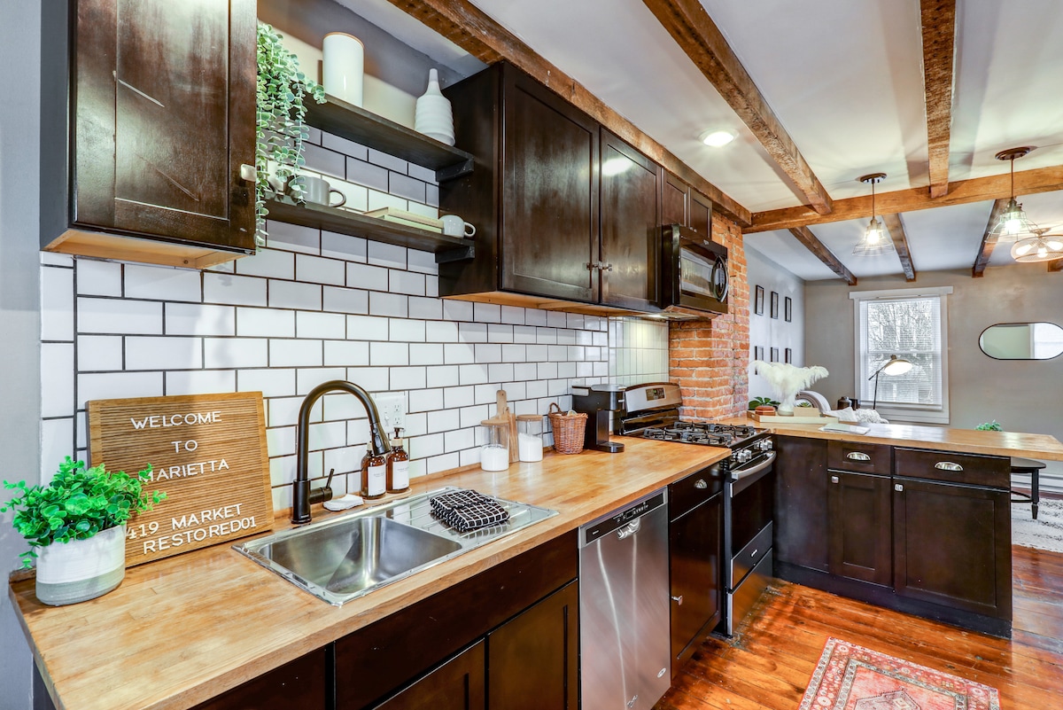 Newly renovated home features all of the modern amenities families enjoy. A large island, a dining table large living room, a bright sunroom with plenty of seating, as well as a sun porch with a bistro table & chairs, outdoor seating, & 3 spacious bedrooms upstairs each has a queen size bed. The home is a minute's walk from our popular home decor boutique, Gray Apple Market. A 10 minute drive to downtown York & other popular destinations such as the York Fairgrounds.