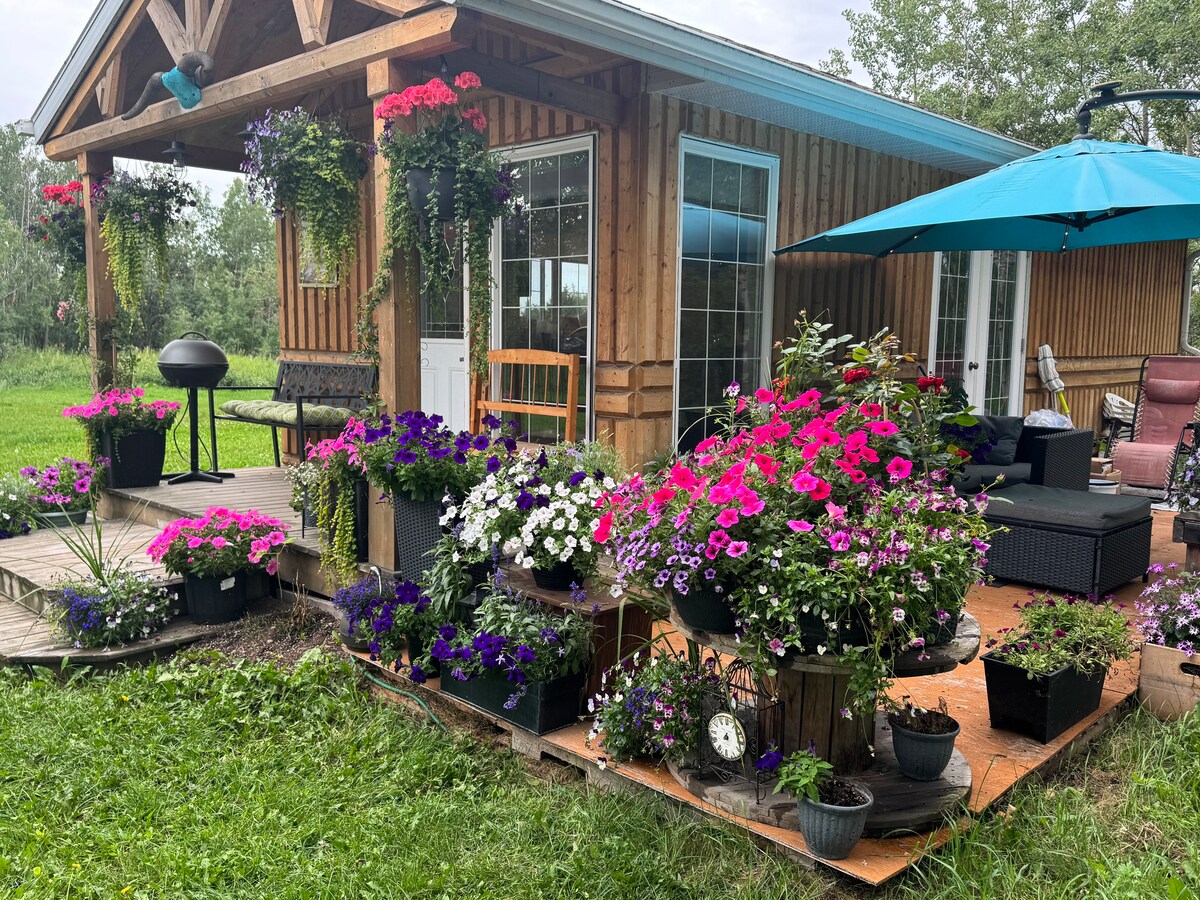 Détendez-vous dans ce logement unique et tranquille. Échappez à la ville et retrouvez-vous immergé dans la nature et les magnifiques prairies de l'Alberta tout en profitant du luxe de la maison dans notre cabane en rondins à seulement 30 minutes d'Edmonton. Nous avons de beaux endroits pour marcher et explorer, un foyer, et vous êtes à seulement quelques minutes de Jurassic Forrest, du terrain de golf Goose Hummock et de la ville de Gibbons où il y a des épiceries et des restaurants. Venez vous évader de la ville et vous détendre dans ce petit lieu d'escapade parfait.