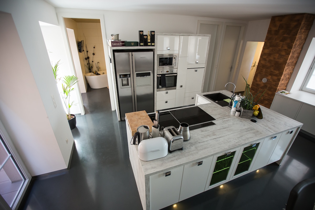 Découvrez la vie élégante dans notre LendLoft moderne situé dans un bâtiment traditionnel situé dans un quartier branché. Un design élégant, une cuisine entièrement équipée et un lit à sommier confortable vous attendent. Votre retraite idéale pour profiter de Klagenfurt. Détendez-vous dans le salon ou au bar de musique « Wohnzimmer » au rez-de-chaussée. Faites une promenade ou faites du vélo le long du canal de Lend jusqu'au lac, faites du tourisme ou explorez les restaurants et les bars élégants à proximité. Parfait pour les citadins à la recherche de confort et de chic moderne.