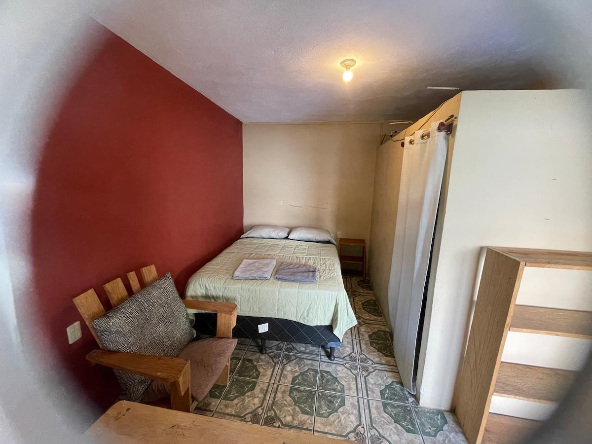 Les voyageurs profiteront d'un accès au deuxième étage de la maison situé au centre, à quelques pas du marché. Profitez d'une vue imprenable sur le volcan San Pedro. 2 lits queen size dans une grande chambre et 1 lit dans une chambre plus petite pouvant accueillir 5 personnes avec une douche et une salle de bain à énergie solaire. Télévision connectée disponible. Pas de parking sur place. Si vous avez un véhicule, un parking à proximité peut être aménagé. LES ANIMAUX DE COMPAGNIE NE sont pas autorisés. Il y a Internet disponible mais pas stable car il vient de la ville locale.