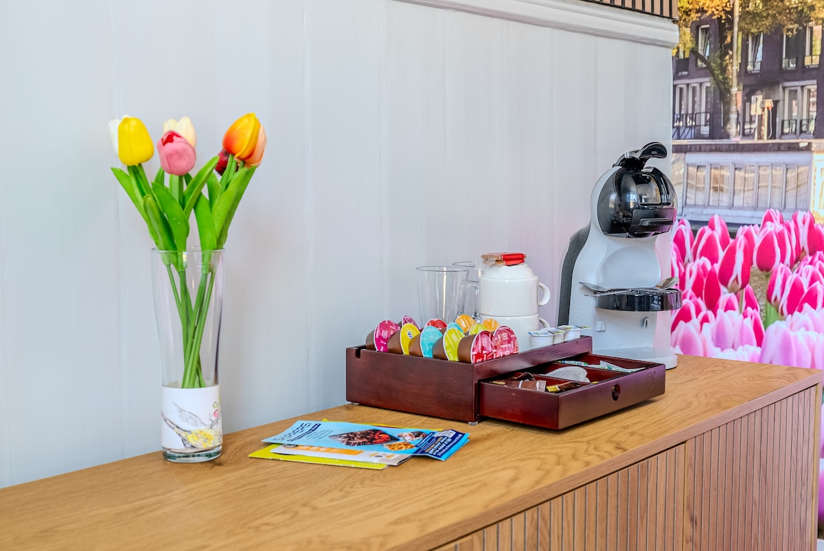 A Touch of Amsterdam Bright, cozy, and full of character — this charming room features a beautiful Amsterdam-themed wallpaper that brings a bit of Dutch magic to your stay, making you feel at home even when you're away. Enjoy two comfortable small double beds, en-suite bathroom, and thoughtful amenities to enhance your experience: 📺 Large screen TV with Netflix ☕ Coffee & tea station