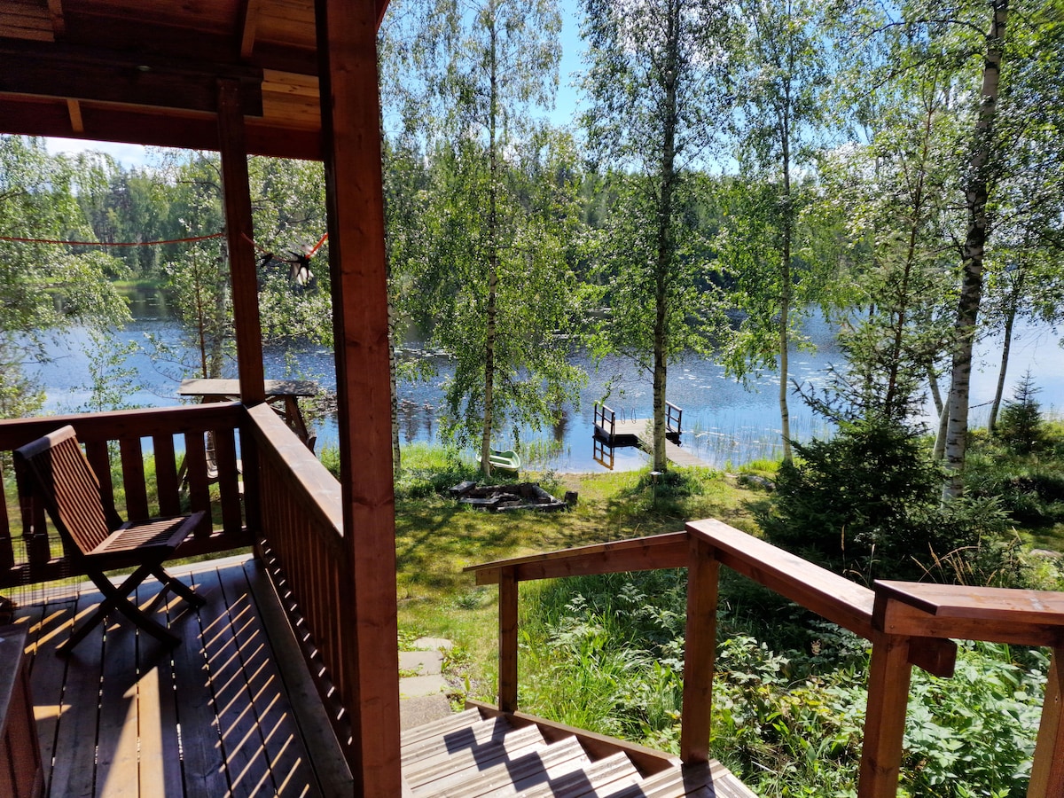 Un chalet confortable entre les pins et le lac à 2 pas de Saimaa. Il est assez petit à l'intérieur (30 mètres carrés) avec une grande terrasse ouverte et une pelouse verte devant. Il y a un lit Loft pour 2 personnes avec vue, une petite cuisine, une cheminée, un sauna sur bois à l'intérieur de la cabane. Il est agréable de commencer votre journée par une baignade matinale et du yoga/petit-déjeuner sur la terrasse en écoutant les chants des oiseaux et de terminer votre journée avec un verre de vin en prenant des photos d'un coucher de soleil époustouflant.