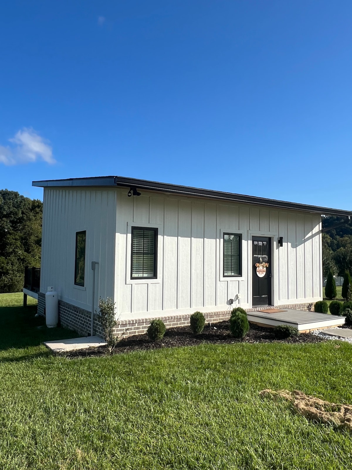 Maison neuve de 650 pieds carrés pouvant accueillir 2 à 4 personnes. Une chambre loft dispose d'un lit King Size qui donne sur des plafonds de 19 pieds et un escalier en colimaçon. 1 salle de bain complète avec grande douche avec 2 pommes de douche. Cuisine complète et canapé-lit qui se déploie pour devenir un lit complet. Cheminée électrique à DEL et grande télévision. Beaucoup de lumière naturelle et grand porche. À distance de marche de toutes les commodités et restaurants du centre-ville. À 1,8 miles du nouveau casino Hard Rock et à 10 minutes en voiture du Bristol Motor Speedway ou du Creeper Trail.