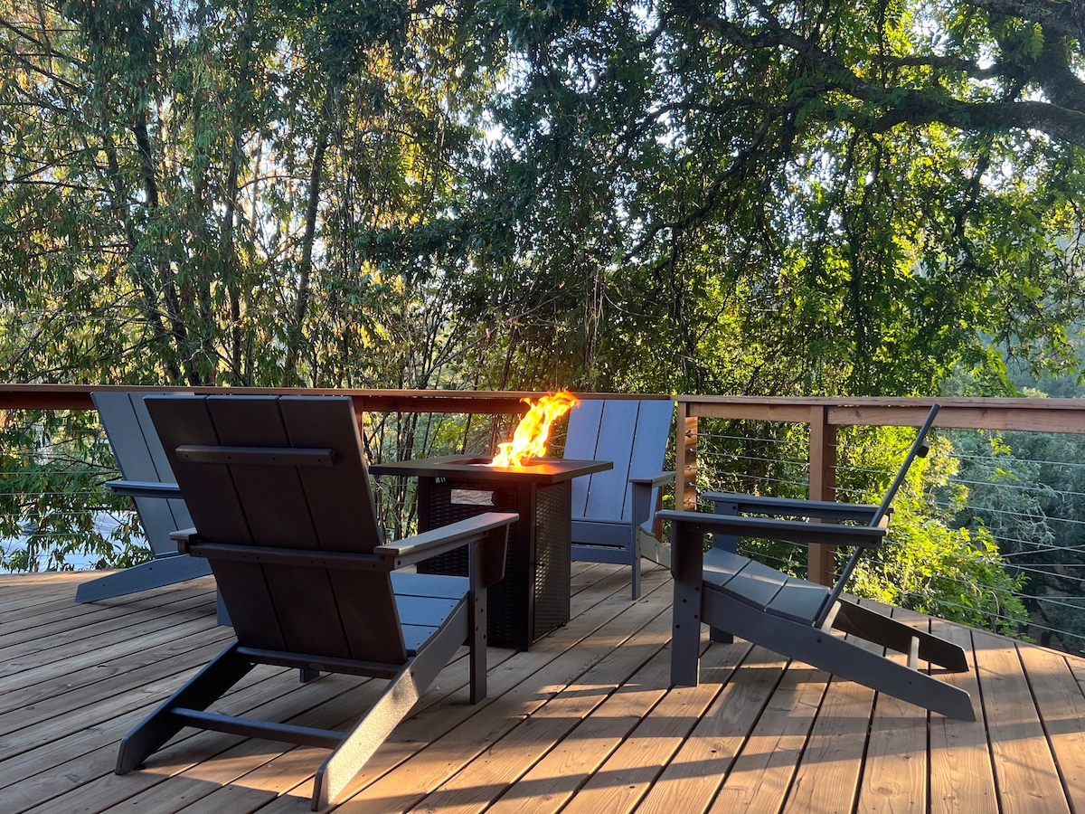 Blottissez-vous dans votre propre appartement d'une chambre sous une canopée forestière dans la vallée de la rivière Russian. Ressourcez-vous dans un lit Queen Size donnant sur un bosquet de séquoias, de fougères et de lierre, juste à côté d'un patio privé. Construit à flanc de colline, Nine Trees vous offre la fraîcheur d'une cave à vin en été et des températures hivernales tempérées même sans la chaleur romantique du foyer au gaz contrôlé par les voyageurs. Vous avez : • Stationnement en dehors de la rue • Kitchenette bien approvisionnée • Canapé-lit ; Nine Trees n'attend que vous pour vous laisser respirer. Tony