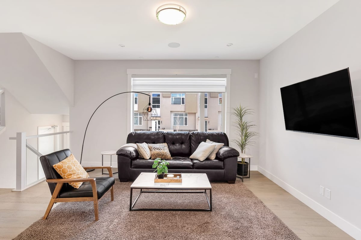 Bienvenue dans notre superbe appartement en copropriété d'angle au centre-ville de Calgary ! Cette retraite moderne vous offre la combinaison parfaite de confort, de luxe et de vues à couper le souffle. Dès que vous entrez, vous serez immédiatement captivé par les fenêtres du sol au plafond qui offrent une vue imprenable sur la ville et les montagnes majestueuses. Veuillez noter les portes d'entrée de la serrure du bâtiment à 22 h. Si vous réservez, vous devrez récupérer la clé ou le badge à un autre endroit.
