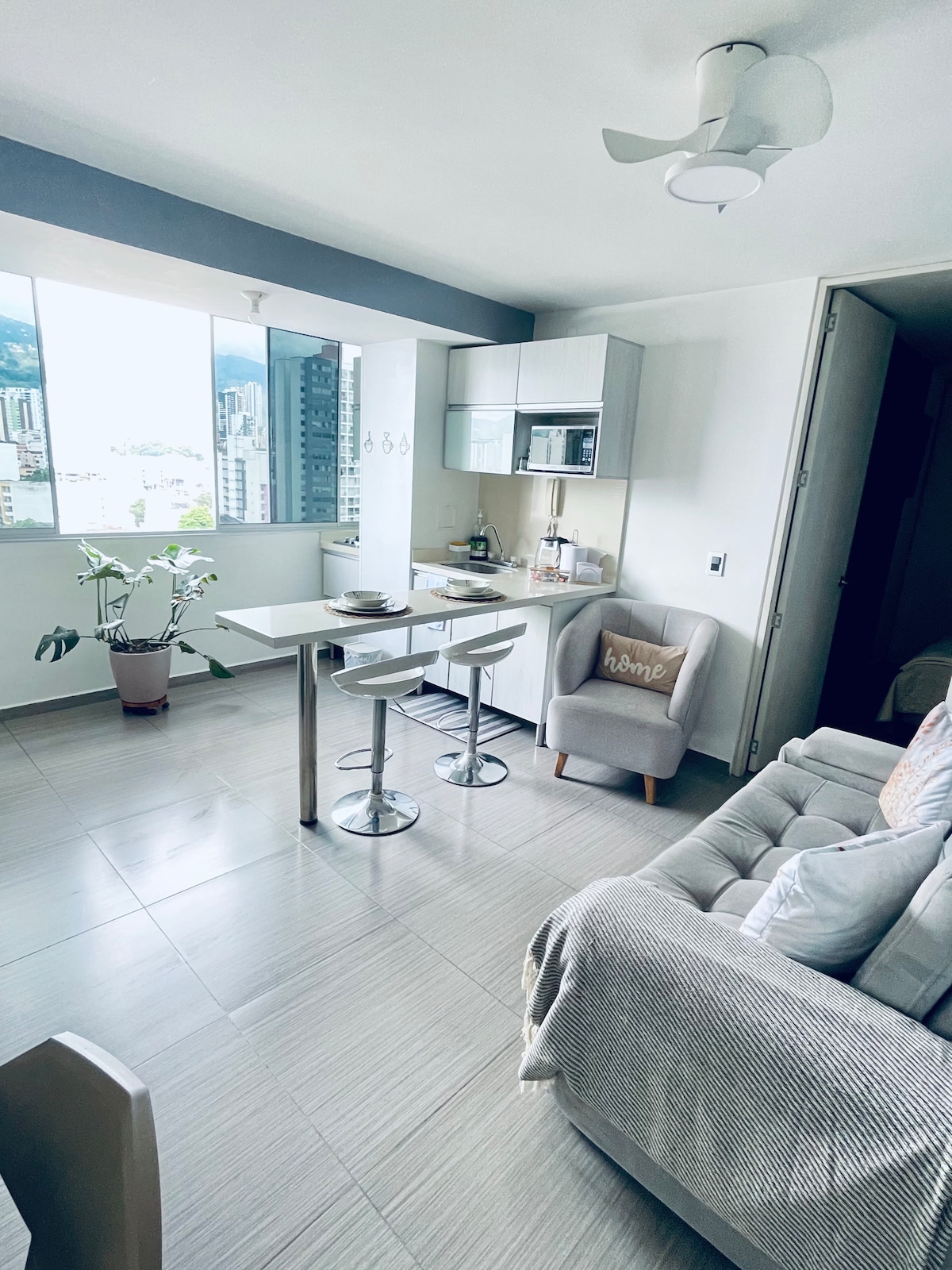 Disfruta de un loft moderno en Cabecera del Llano, perfecto para relajarte y descansar, ideal para parejas. Cama King con TV 55” frente a la cama, ventanales piso-techo con blackout, sala con hamaca y comedor, cocina equipada, A/C, Wi-Fi con respaldo y planta de energía. Zona de trabajo con mesa y silla ergonómica. Ingreso autónomo con códigos y ascensor. Minimarket 24/7 en el piso 1. Rodeado de parques, cafés, restaurantes y centros comerciales. ¡Comodidad, estilo y ubicación en un solo lugar!