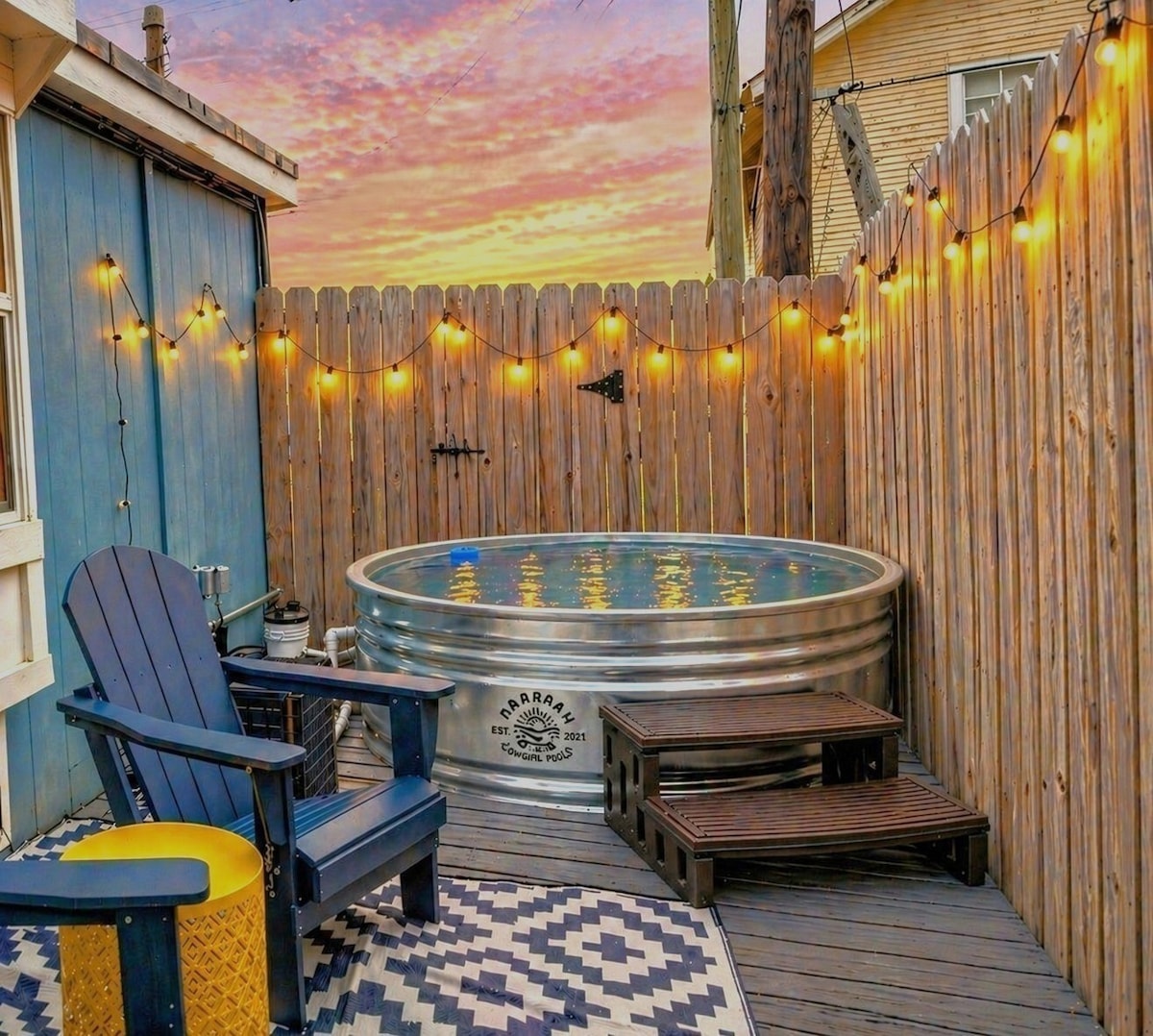 Offrez-vous un séjour relaxant dans ce chalet confortable des années 1950. SandPiper Cottage offre un cadre tranquille niché dans un quartier calme (à 2 pâtés de maisons de la plage et à moins de 2 minutes de Moody Gardens et Schlitterbahn). Profitez d'une promenade au coucher du soleil sur la plage ou d'un après-midi paresseux sur le spacieux porche de la cour arrière. Un bar à café de luxe adoucira votre séjour. La détente est à deux pas de la plage !