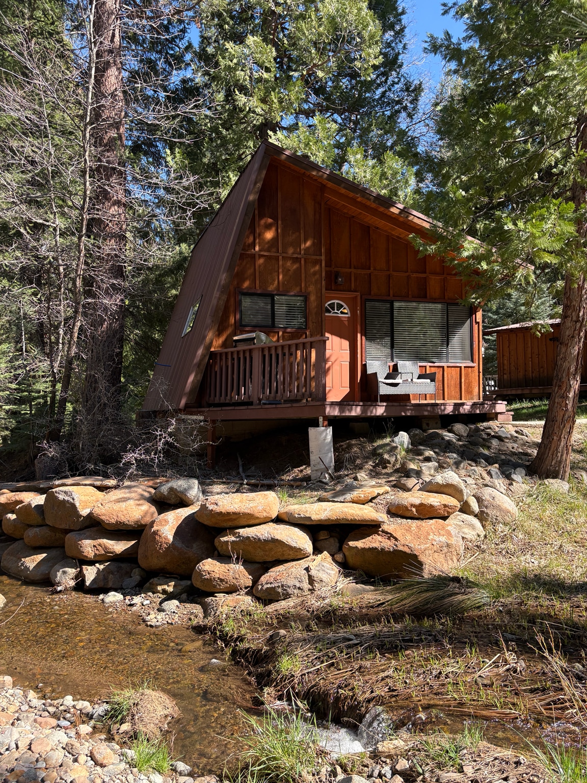 Wake to creek sounds and light filtered through the pines. The Cabin at The Crossing at Gold Run is an intentional forest stay: immersive in nature, yet thoughtfully designed for comfort. Here, you don’t have to choose between focus and restoration. Begin your morning sipping coffee at the picture window while watching deer move through the trees. Then open your laptop and move through your work with the same calm clarity. High-speed internet keeps you steady. The forest keeps you grounded.