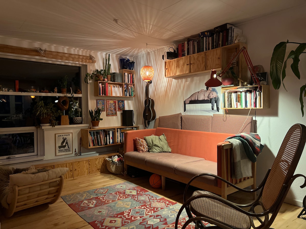 Détendez-vous en famille dans cette merveilleuse maison, située juste en bas de la forêt, de la rivière et à seulement 10 minutes à vélo de la plage et du centre-ville. La maison est pleine de charme et de solutions uniques, et dispose de 4 chambres. Il respire la vie des enfants et le jardin est à la fois un café pour enfants et un jardin calme et naturel avec sauna et foyer jusqu'à la forêt. Il y a deux terrasses, avec soleil et ombre et un bon barbecue à gaz.