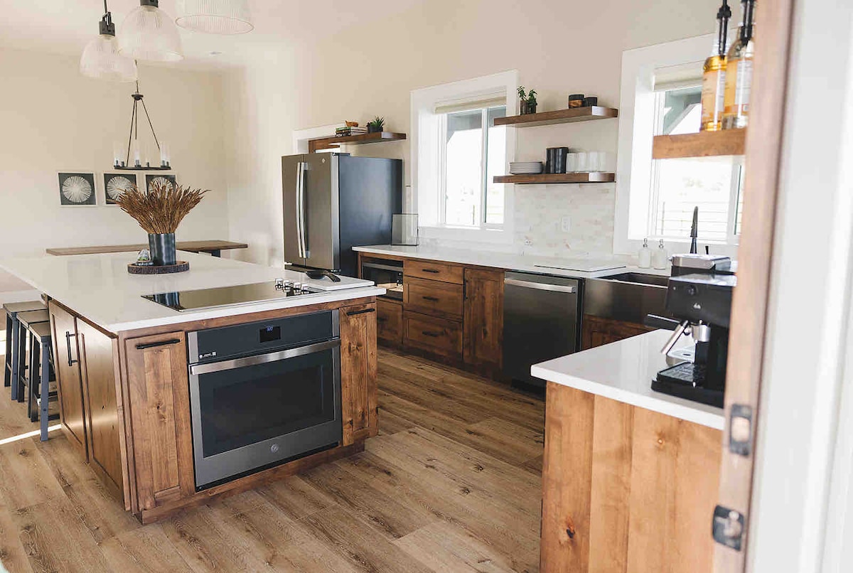 Ferme de 3 chambres avec vue sur le fabuleux coucher de soleil de l'Idaho. Chambre principale : lit queen size, placard, couverture Barefoot Dreams. Chambre 1 : lit double, placard, couverture Barefoot Dreams. Chambre 2 : ensemble de lits superposés, commode, couverture Barefoot Dreams. Les enfants adoreront passer la nuit dans cette pièce. 2 parcs pour bébé Cuisine : entièrement approvisionnée avec tout ce dont vous avez besoin pour cuisiner. * Beaucoup de casseroles/poêles *Vaisselle *Ustensiles *Four. *Micro-ondes *Réfrigérateur Buanderie : lave-linge et sèche-linge PAS DE CLIMATISATION - Plusieurs ventilateurs
