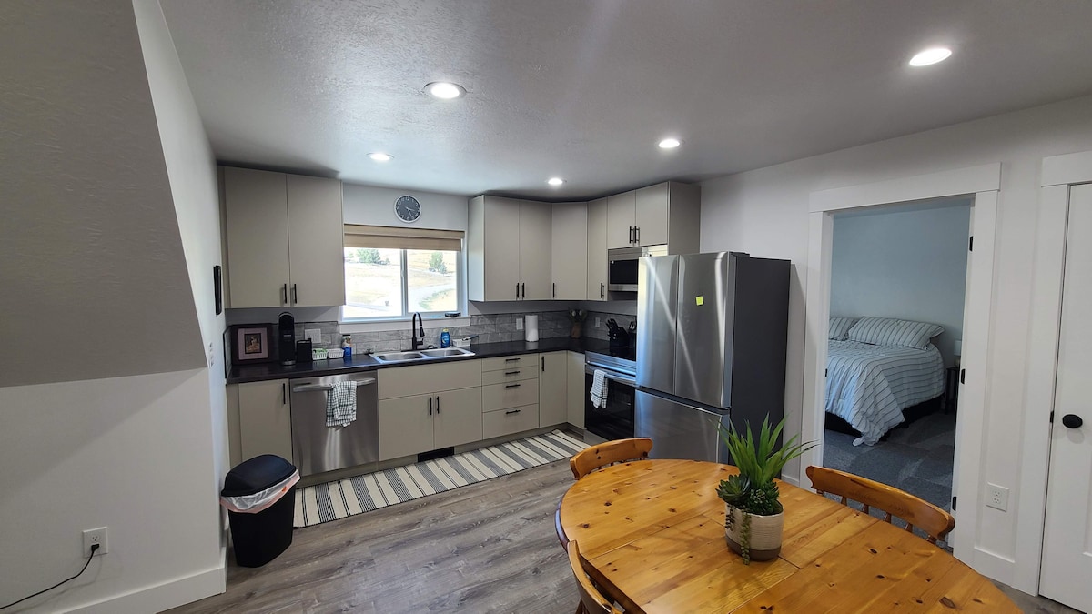 Profitez de notre belle vallée et de notre petite ville sympathique. Si vous êtes à la recherche d'un espace paisible, calme et confortable pendant que vous voyagez, travaillez ou visitez votre famille et vos amis, venez séjourner chez nous. Notre voisin a un coq, vous aurez donc toute l'expérience d'une petite ville ! Idéalement situé pour tous les plaisirs en plein air. Accès facile par l'I-15. Notre appartement dispose d'un lit King Size et d'un canapé-lit Queen Size. Entrée privée et parking couvert. Assurez-vous de confirmer le nombre de personnes dans votre groupe ! Désolé, nous n'acceptons pas les animaux de compagnie.