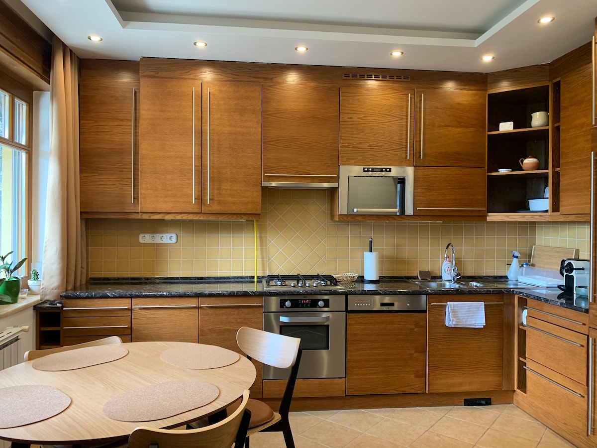 Bienvenue dans notre appartement confortable dans un complexe résidentiel conçu dans le style italien. Cet endroit est parfait pour ceux qui apprécient la paix et le confort. La principale caractéristique est un balcon spacieux avec un jacuzzi, une douche extérieure, des chaises longues et un coin repas. Le complexe est entouré de boutiques, y compris des boutiques ouvertes 24h/24, et de cafés. L'emplacement pratique offre un accès facile aux transports en commun, vous permettant de rejoindre rapidement n'importe quel point de la ville. Notre appartement est votre retraite confortable dans la ville.