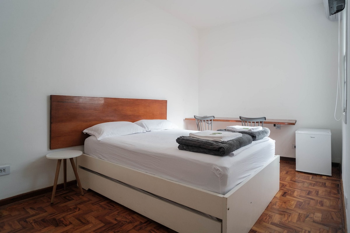 Découvrez le charme urbain de Santo Amaro, situé à seulement 200 m du consulat américain et à 450 m de la station de métro Borba Gato, offrant un accès facile à plusieurs attractions de la ville. Cet espace confortable offre une chambre et une salle de bain. Idéal pour accueillir 2 personnes, et pouvant en accueillir jusqu'à 3. Nous offrons une connexion Wi-Fi haut débit, la climatisation split et une télévision connectée. La propriété est une maison divisée en logements indépendants, semblable à une auberge. Il n'y a aucun espace partagé.