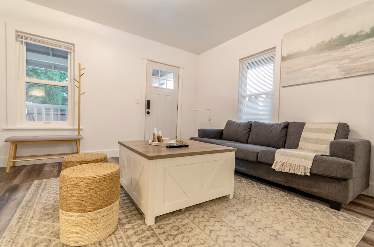 North End Cottages vous invite à vous détendre dans des chalets élégants (construits en 1904 et récemment entièrement rénovés) situés dans une rue sans issue convoitée de North End Tacoma. Situé à proximité d'UPS et des hôpitaux, North End Cottages se trouve à 5-15 minutes à pied des cafés, restaurants, bars et plus encore. North End Cottages se compose de deux maisons séparées sur une propriété, la maison principale et la maison de charrette. Les voyageurs peuvent réserver l'un ou l'autre sous des annonces distinctes.