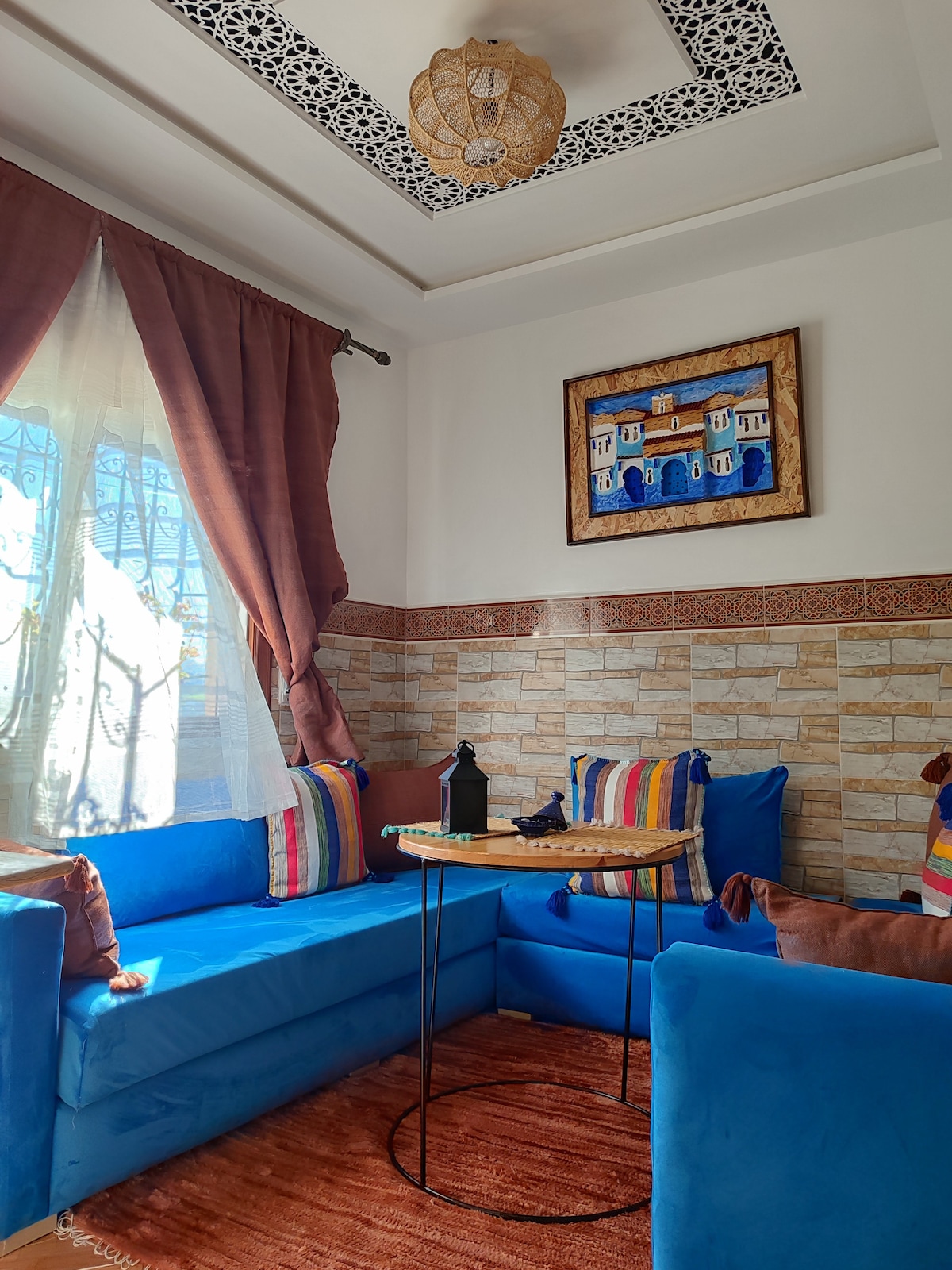 Discover our cozy apartment in the heart of Chefchaouen, known for its stunning blue-washed streets. Enjoy a blend of traditional Moroccan decor and modern comforts, featuring a comfortable living area, a fully equipped kitchen, and a private balcony with breathtaking mountain views. Just steps from the vibrant medina, you can explore local markets, cafes, and cultural landmarks. Experience the warmth of the local community and make lasting memories in this magical town!
