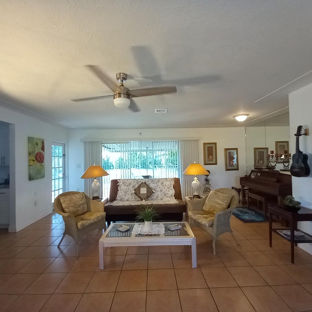 This old Florida home has been updated with granite counters in the kitchen with newer appliances, ceramic tile, and wood flooring. There is plenty of room to spread out in the main living room and within the wood wall and ceiling finished gathering room. The backyard patio area is perfect for outdoor BBQs. The lush tropical landscaping provides the old Florida home feel. The best amenity is a semi-private outdoor shower with lush vegetation screening. Perfect for the outdoor enthusiast.