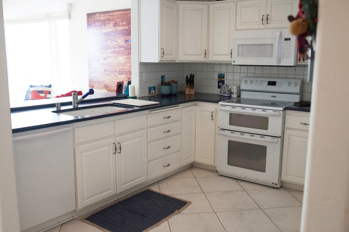 Enjoy this impeccably remodeled condo in the heart of Carlsbad Village. Total remodel creates a light, bright, open space. This unit is a desirable END unit. No one is above, below, or on one side!! Peaceful and Calming. Beach supplies: boogie boards, beach tote, cooler, beach chairs, umbrella, towels Walk out the door and you are within 1 block of one of California's most desired beaches- a six-mile stretch of white sand with a well-designed boardwalk for walking or running.