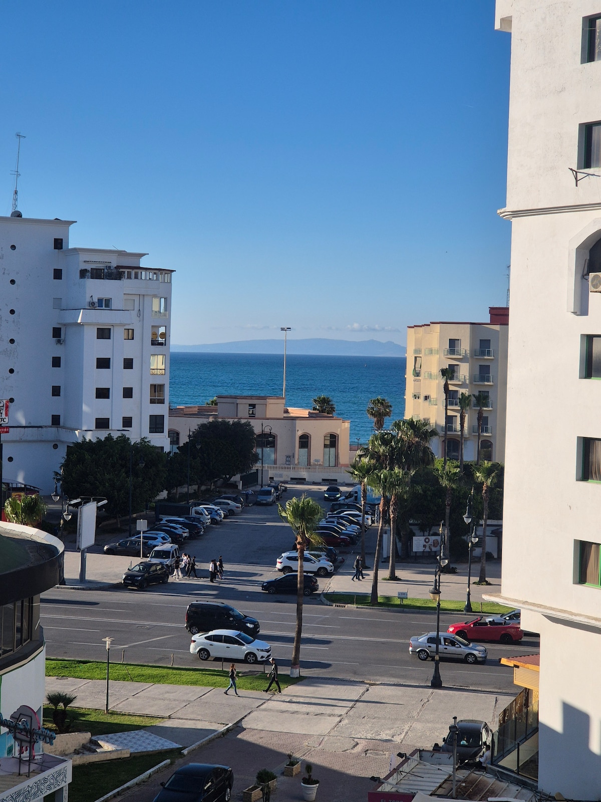 Appartement moderne et lumineux à City Center Tanger Cet appartement au centre de Tanger offre une vue magnifique sur la ville. Il comprend une chambre double avec balcon, un salon avec TV, une cuisine équipée, une salle de bains privative, et une terrasse. Wi-Fi gratuit et sécurité 24/7. À proximité des commodités (cafés, restaurants, centre commercial) et à 1 minute à pied de la plage et 5 minutes de la gare TGV. L'aéroport de Tanger-Ibn Batota est à 13 km. Au plaisir de vous accueillir 🤗