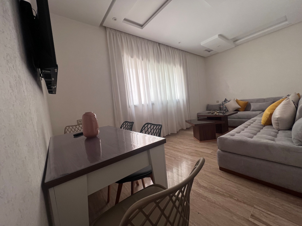 Cet appartement situé au centre de Tanger est la location idéale pour vous et votre famille, à seulement trois minutes à pied de la plage et une vue imprenable sur le boulevard. Les supermarchés et les restaurants sont idéalement situés en bas, offrant un accès facile à tous vos besoins quotidiens à pied. La gare ferroviaire est à 10 minutes en voiture, et le souk historique est accessible en 8 minutes en voiture. L'appartement est spacieux, bien équipé et situé dans un quartier résidentiel calme.