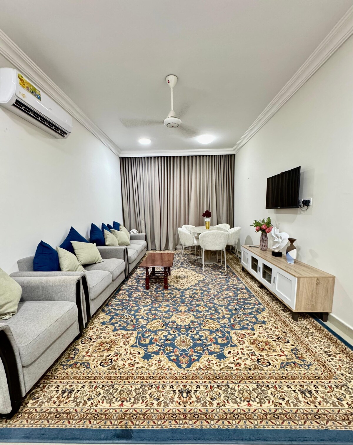 My new, cozy studio apartment in Hawana Salalah invites you to relax and unwind. Enjoy the immediate proximity to the beautiful white sandy beach, just a 5-minute walk away near the 5-star Rotana Hotel, where you can watch stunning sunsets and even dolphins from the jetty. Or simply head to the pool, which is located directly next to the apartment. The Marina, the heart of Hawana, is about a 10–15 minute walk away. There you will find restaurants, a bar, a club, as well as charming cafés.
