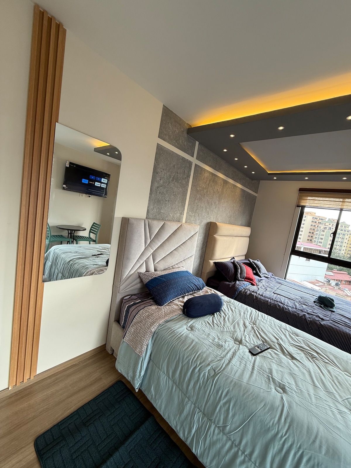 Profitez du charme de ce studio moderne Smart studio entièrement neuf. Meublé et équipé avec tout ce dont vous avez besoin pour faire de votre séjour un moment agréable. Il dispose d'un lit supplémentaire confortable, de la taille Queen, d'une télévision de 32 pouces et d'une connexion Wi-Fi. En plus du réfrigérateur, d'une cuisine, d'une chaudière électrique, d'une table avec deux chaises. Eau chaude 24/7 Profitez de cet environnement confortable lors de vos voyages d'agrément ou d'affaires.