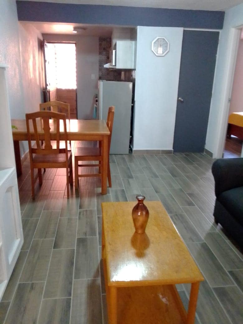 Un appartement meublé avec des services hôteliers. Il dispose d'un salon, d'une cuisine entièrement équipée, de deux chambres et d'une salle de bain. Il est situé à 2 pâtés de maisons de la gare routière et à proximité du centre-ville. Nous sommes situés à 30 minutes de Queretaro et San Miguel de Allende.