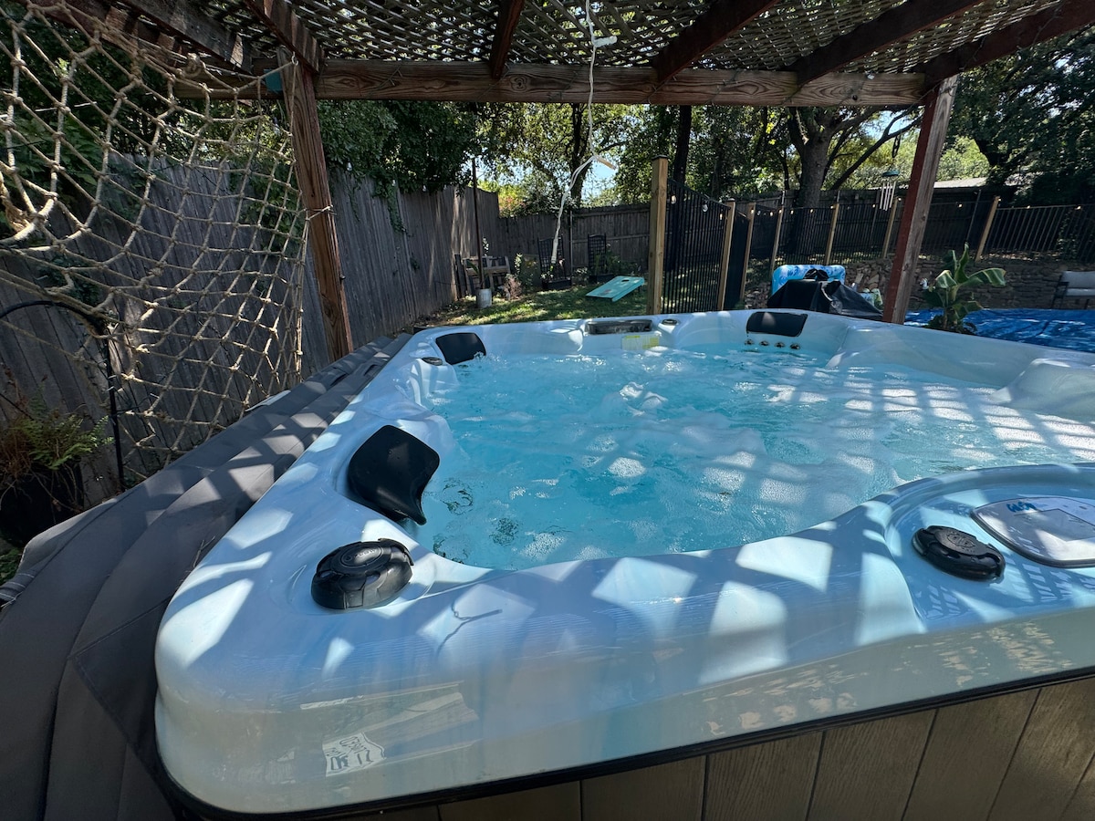 Maison magnifiquement rénovée située au centre de DFW. À quelques minutes de TCU, du centre-ville de FTW et de tout ce qu'Arlington offre, mais nichée dans un quartier calme. Préparez-vous à vous détendre au bord de la piscine ou à vous réchauffer près du foyer. Le patio et la piscine sont privés et confortables pour une détente ou un jeu maximum. À l'intérieur, des chambres séparées, de beaux lits et des draps offrent des couchages confortables. Téléviseurs intelligents et ventilateurs dans toutes les chambres.