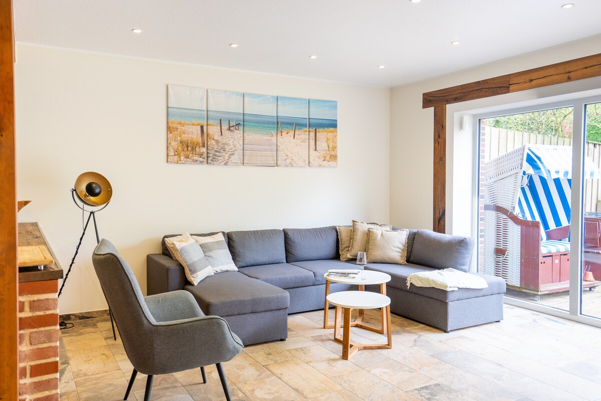 Salty Breeze SPO : Appartement confortable dans un endroit calme près de la plage à SPO Böhl. Lit boxspring 180, un canapé d'angle confortable avec des oreillers et des couvertures, une grande cuisine avec machine Nespresso et lave-vaisselle vous invitent à vous détendre. Linge de lit et serviettes inclus, Enregistrement automatique flexible, machine à laver, Jardin commun avec des gourmandises et des pommiers. Situé près de la plage, directement sur la digue et le phare de St.Peter-Ording dans le quartier plus calme de Böhl. Parfait pour les amis des chiens et les amoureux de la nature.