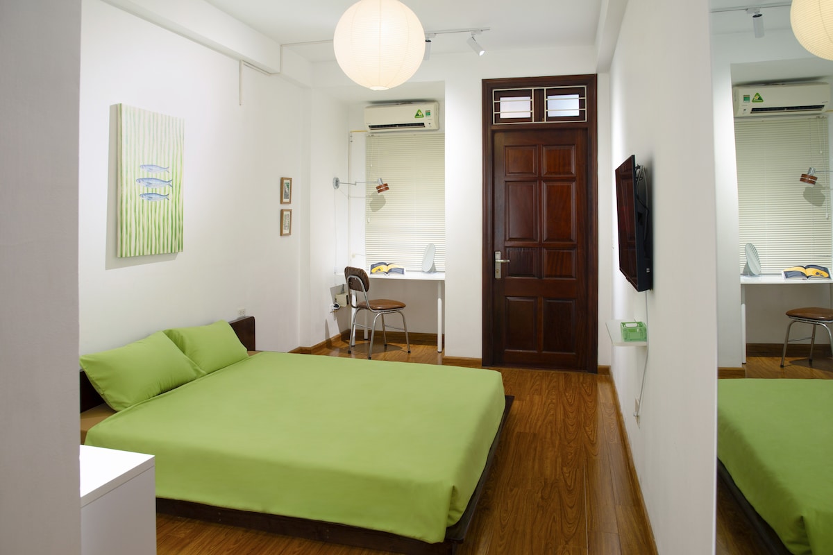 Stay refreshed this summer in a cool and cozy room inside a preserved French heritage villa. Surrounded by tall trees, gardens, and indoor plants, the space stays naturally cooler, an oasis in Hanoi’s warm weather Pinterest-worthy decor, soft lighting, and a peaceful ambiance. - Naturally cooler - Quiet, friendly neighborhood - Surrounded by trees and lush gardens - Washing machine & dryer - Full kitchen - 5-minute walk to West Lake - 30 minutes to Noi Bai Airport - 10 minutes to Old Quarter