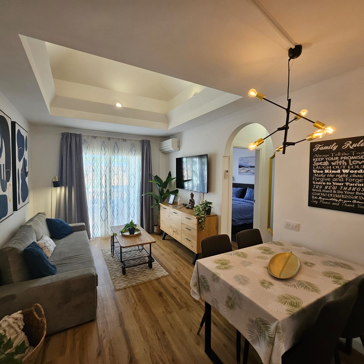 Agréable séjour en ECOVILLA en merveilleuse oasis rurale au nord de l'île où trouver bien-être et confort. Logement au rez-de-chaussée à usage exclusif: grands espaces, matériaux respectueux de l'environnement, bien équipé, 2 chambres, capacité 6 personnes, Digital nomad friendly, TV numérique, WIFI, parking privé, jardin tropical. Destination pratique pour rejoindre plages et sites sportifs du centre-nord, bien relié aux routes urbaines. Idéal pour amis et familles. 15 minutes de l'aéroport.