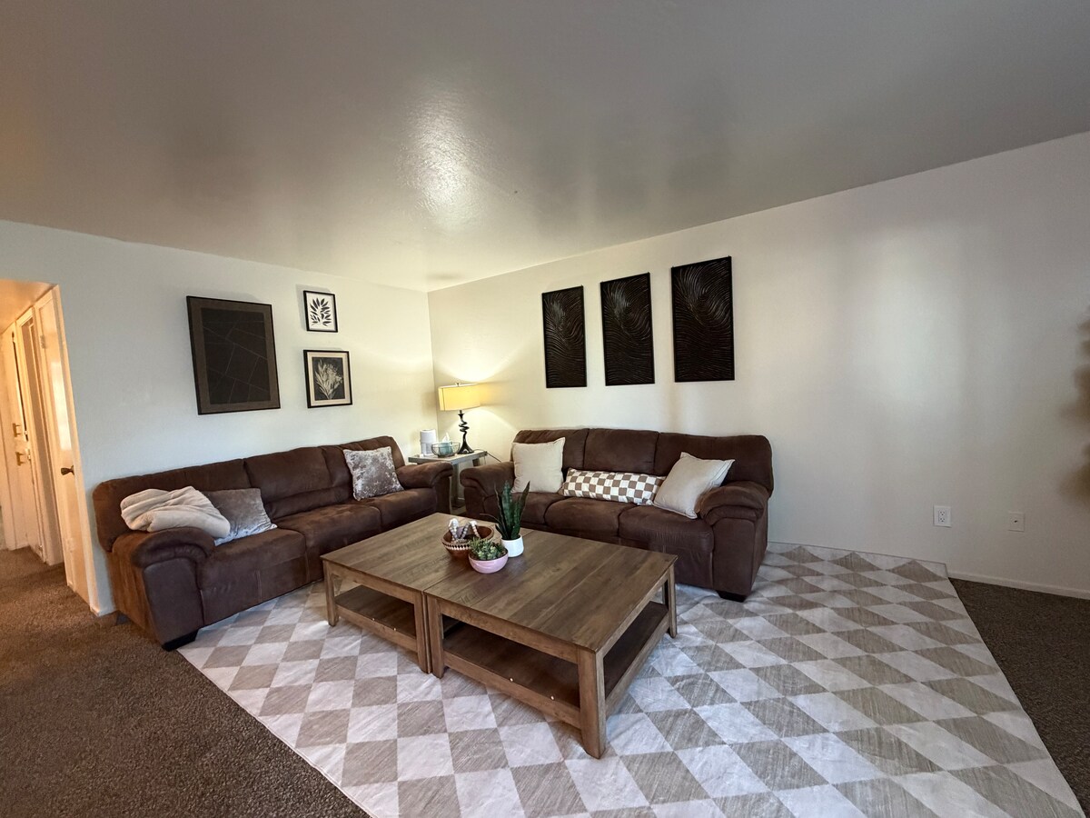 Préparez-vous à vous envoler avec style dans notre studio élégant et moderne, parfaitement situé près de l'aéroport aérospatial de Mojave ! Cette retraite chic est conçue pour alimenter vos passions, que vous soyez en ville pour affaires ou que vous cherchiez simplement à vous détendre dans une atmosphère cool et confortable. Après une longue journée d'exploration ou de travail acharné, revenez dans notre studio et détendez-vous avec style. Notre ambiance chaleureuse est idéale pour se détendre, se ressourcer et se préparer aux aventures à venir. Alors pourquoi attendre ? Réservez