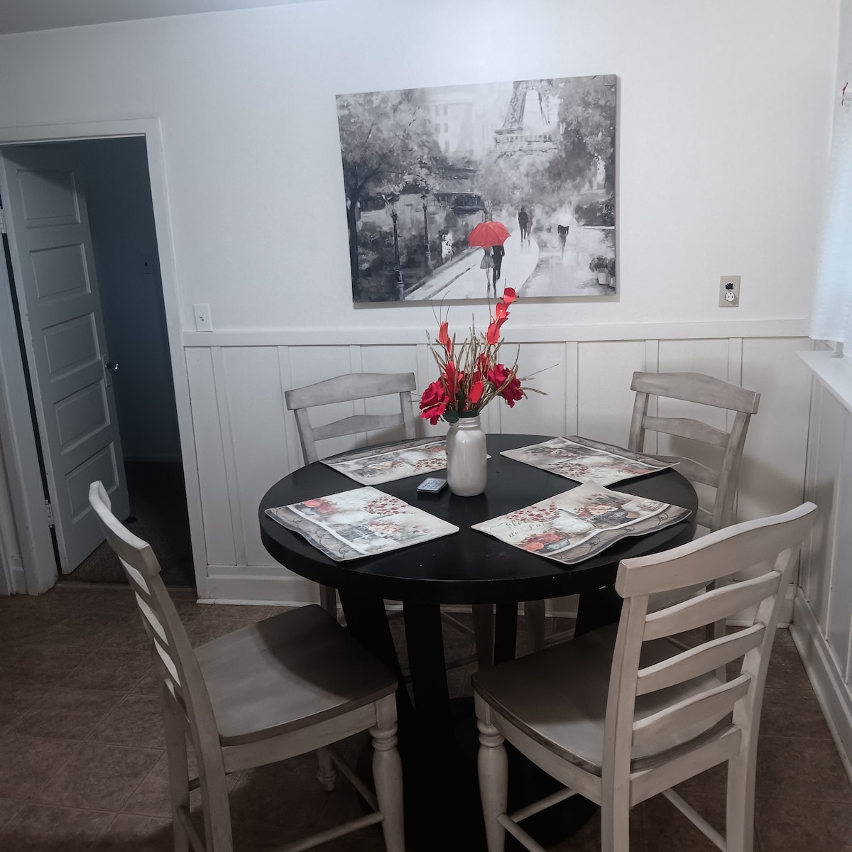 Votre famille sera proche de tous les sites et commodités lorsque vous séjournerez dans cette maison située au centre. Construite en 1948, cette maison en briques offre des détails charmants, des éléments intégrés dans la salle à manger et une belle cheminée dans le séjour. Marchez jusqu'à l'un de nos cafés locaux préférés ou traversez la rue pour déguster un hamburger et des frites. Accès facile à l'autoroute.