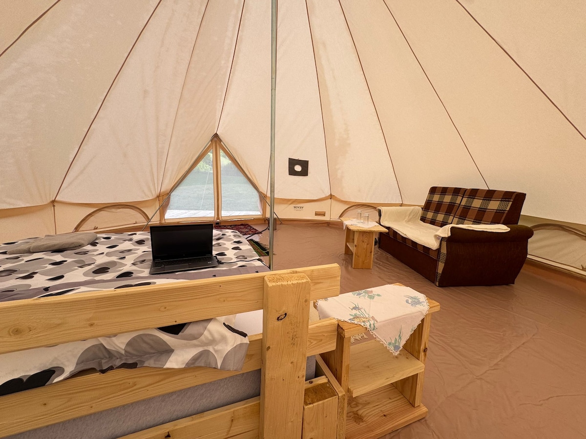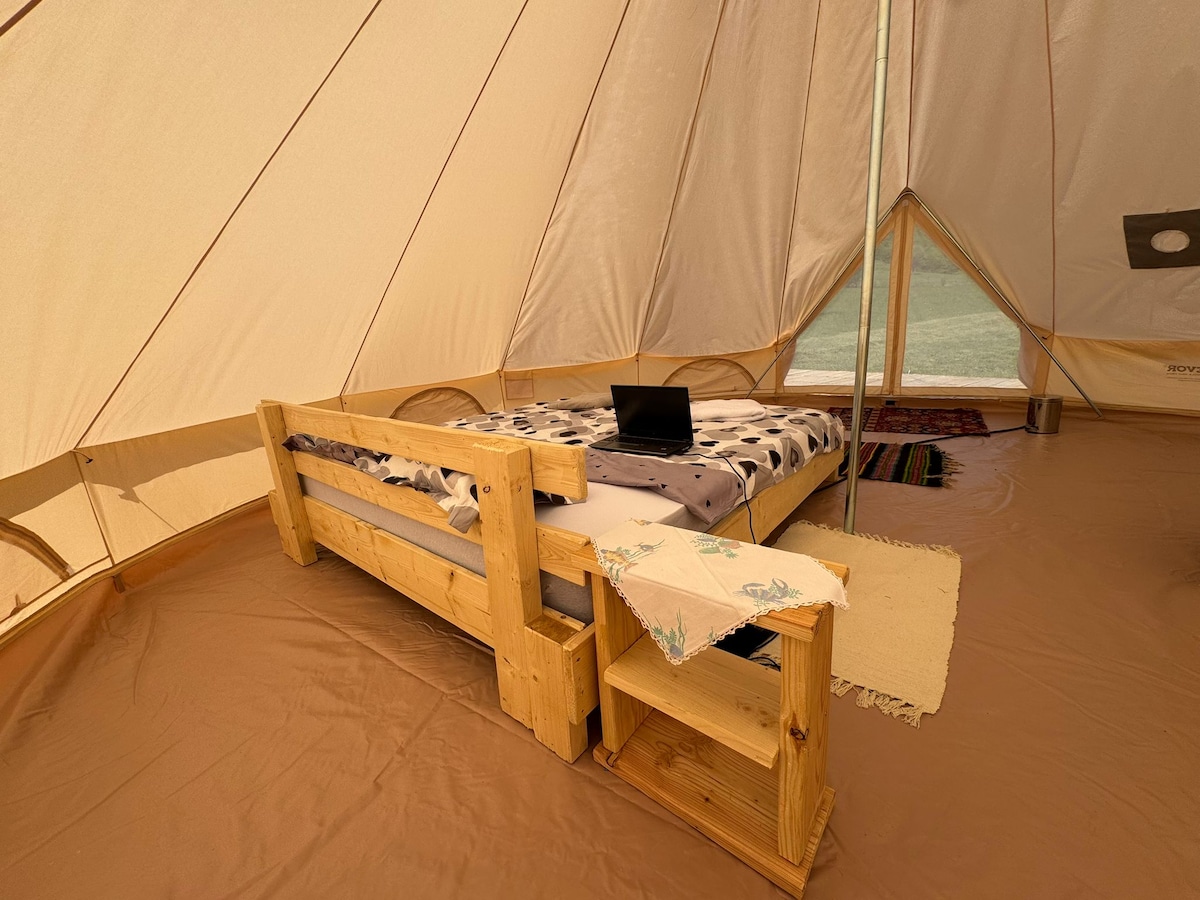 Scapi de toate grijile când stai sub stele, într-un cort glamping spațios, cu vedere la munți, sunet de râu aproape și foc de tabără. Locul perfect pentru deconectare, liniște și aer curat, la doar 3 km de Telciu. Ideal pentru cupluri sau călători care vor să se reconecteze cu natura, fără să renunțe la confort.